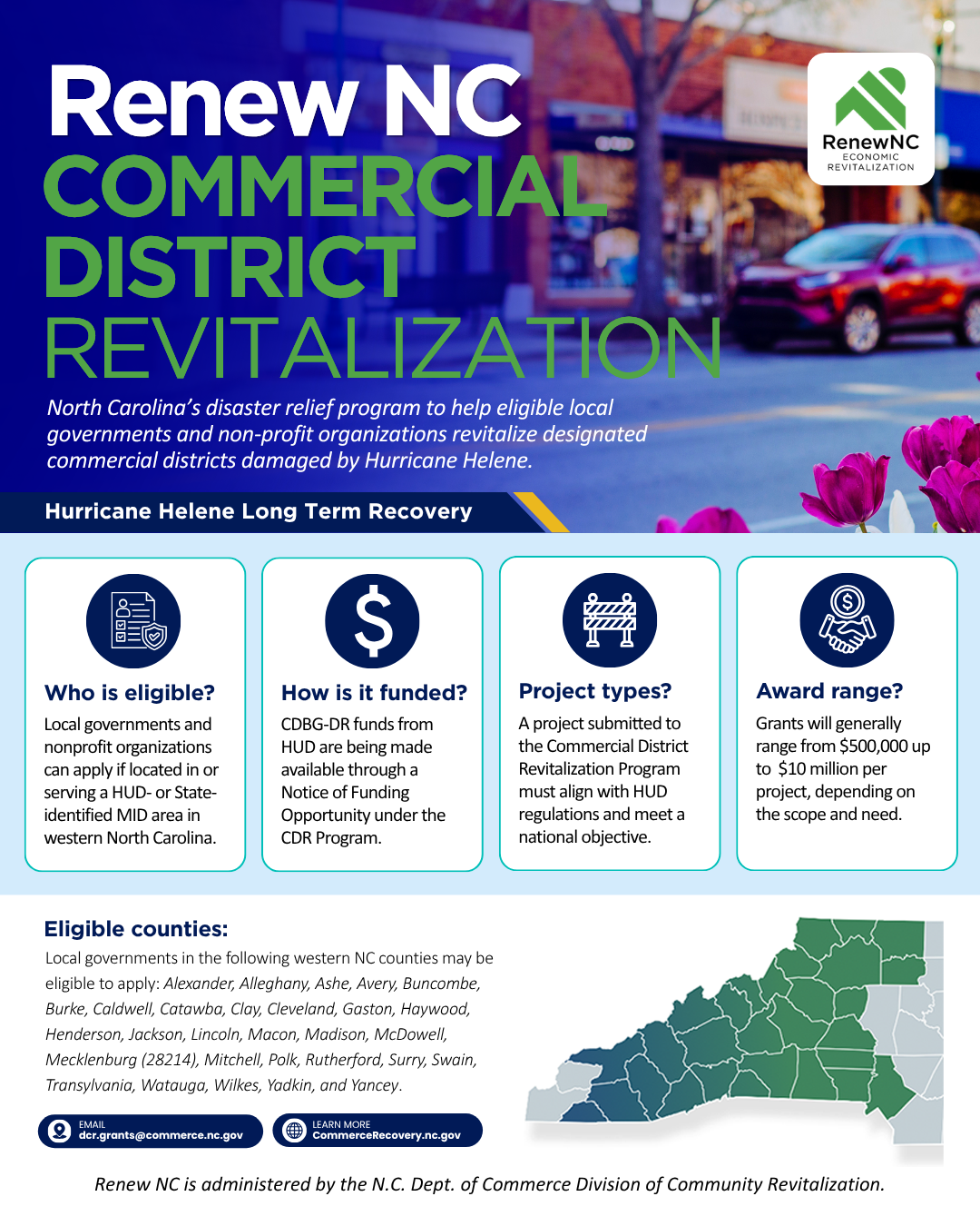 All the following materials are provided by the Division of Community Revitalization (DCR) exclusively for the purpose of promoting our Renew NC programs.